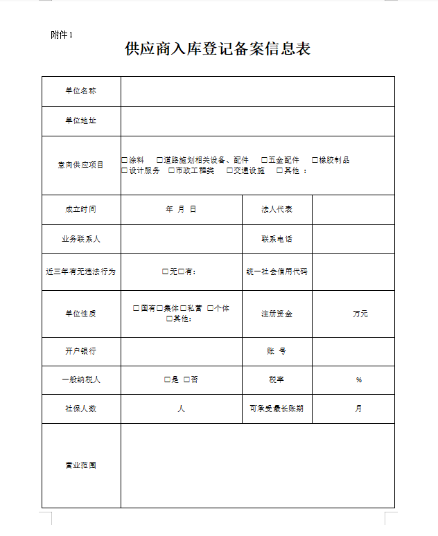 關(guān)于公開(kāi)征集供應(yīng)商入庫(kù)的公告